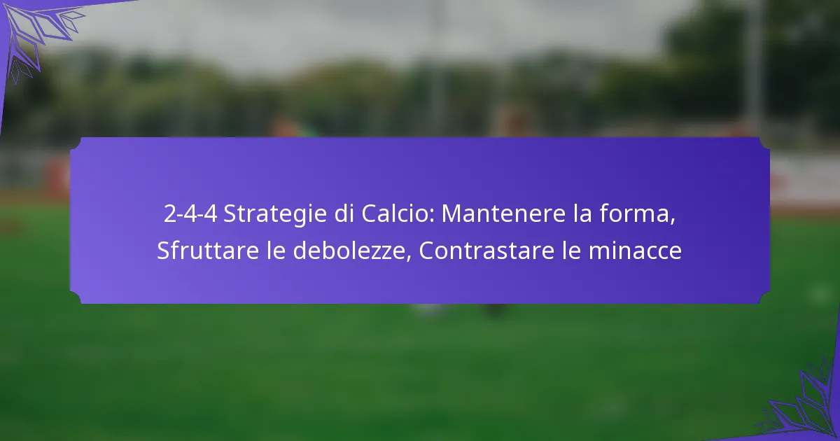 Contrastare le minacce in una formazione 2-4-4 implica un posizionamento strategico e una comunicazione efficace per mantenere la forma difensiva. Le tattiche chiave includono anticipare le mosse degli avversari e garantire assegnazioni di marcatura appropriate per neutralizzare potenziali attacchi.