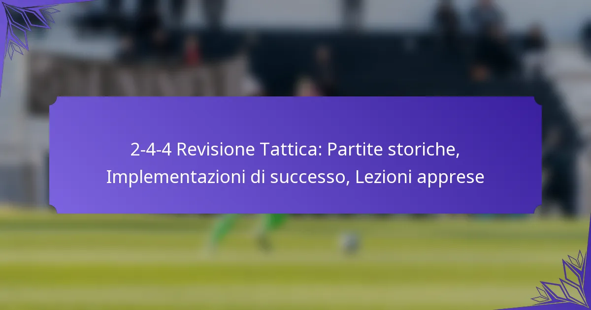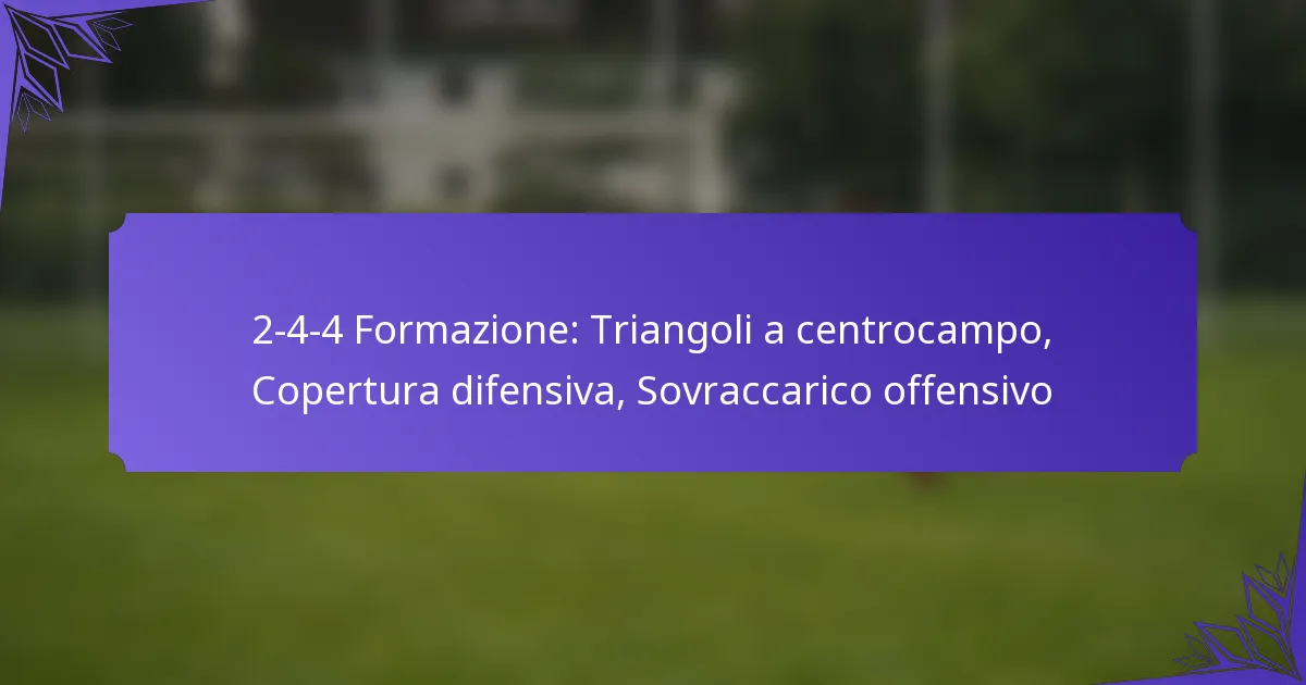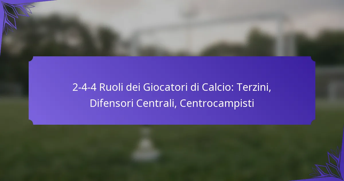 La formazione 2-4-4 nel calcio è un assetto tattico dinamico che combina due difensori, quattro centrocampisti e quattro attaccanti, dando priorità al gioco offensivo mantenendo una solida presenza a centrocampo. Per massimizzare l’efficacia di questa… 2-4-4 Configurazione: Esercitazioni tattiche, Sessioni di pratica, Analisi della formazione